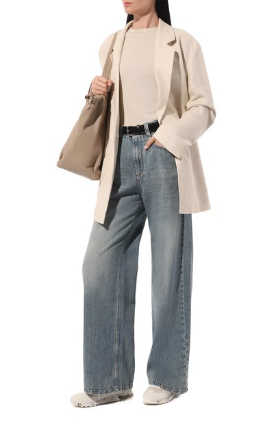 Стеганые кроссовки S-D-Runner с эластичной шнуровкой выполнили из матового полимерного материала. Модель с сетчатыми язычком и задником установили на массивную, но легкую изогнутую подошву с эмблемой марки.