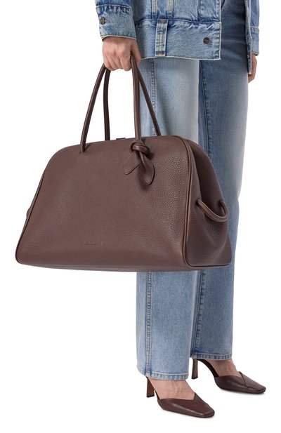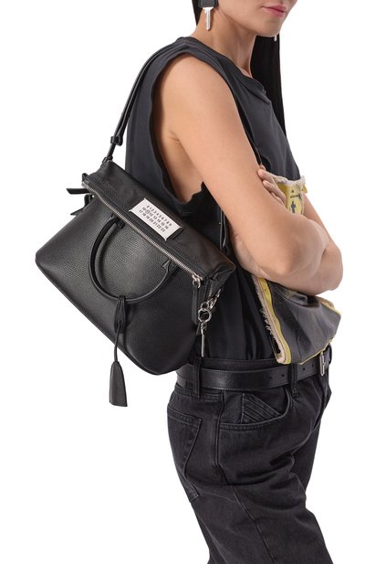 Сумка Aries с двумя короткими ручками легко превращается в клатч — на дне разместили широкую петлю. Модель с карточным слотом внутри выполнили из телячьей кожи.
