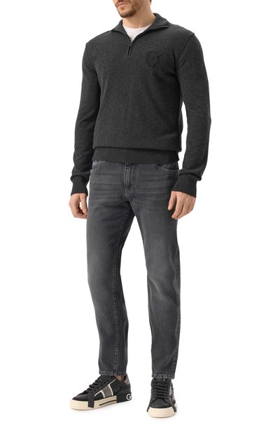 Меланжевый пуловер, украшенный миниатюрной брендированной пластиной сзади, гармонично впишется в базовый гардероб. Модель из чистой шерсти выполнили лицевой вязкой, а манжеты, пояс и V-образный вырез – английской резинкой.