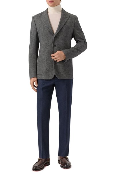 Двубортный пиджак Sicilia с остроконечными лацканами выполнили из микса шерсти первого пострига и полиамида, предусмотрев шелковый подклад. Модель с шевронным узором составит идеальный дуэт с парными брюками.
