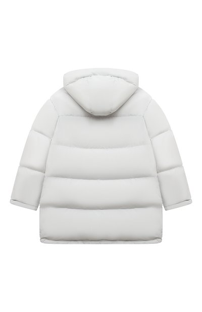 Нейлоновое пальто на потайных кнопках утеплили утиным пухом и пером. По бокам модель с эластичными манжетами дополнили врезными карманами с листочками.