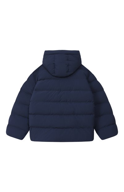 Стеганую парку на гусином пуху выполнили из нейлона, а регулируемый капюшон, два из четырех карманов и планку, скрывающую молнию, – из матового полиэстерового твила. На рукаве сзади куртку украсили брендированным ярлыком.