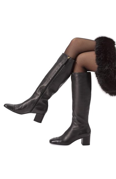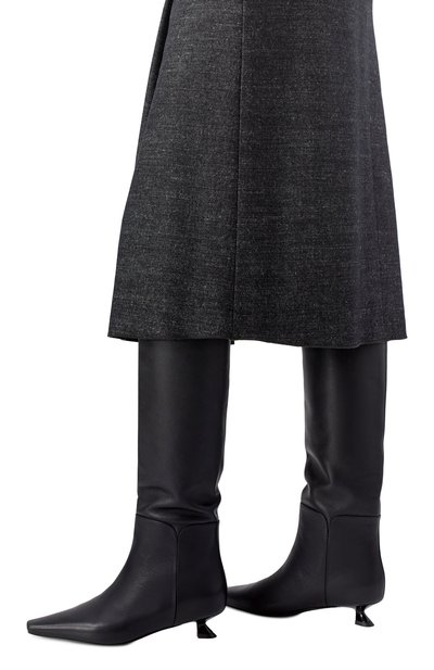Сапоги Haven с прямым голенищем без застежки выполнили из телячьей кожи тонкой выделки. Пару с зауженным квадратным мысом поставили на невысокий устойчивый каблук.
