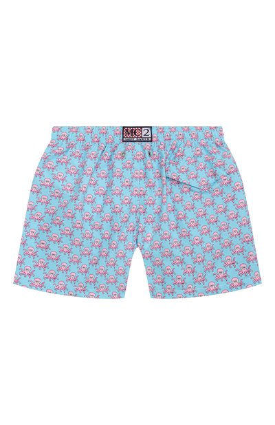 В совместную коллекцию Palm Angels и Vilebrequin вошли плавки-шорты с двумя боковыми карманами и еще одним задним, закрывающимся клапаном. Модель с широким поясом-кулиской выполнили из переработанного нейлона с принтом Spray Paint.