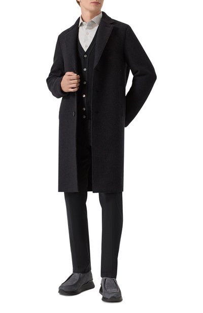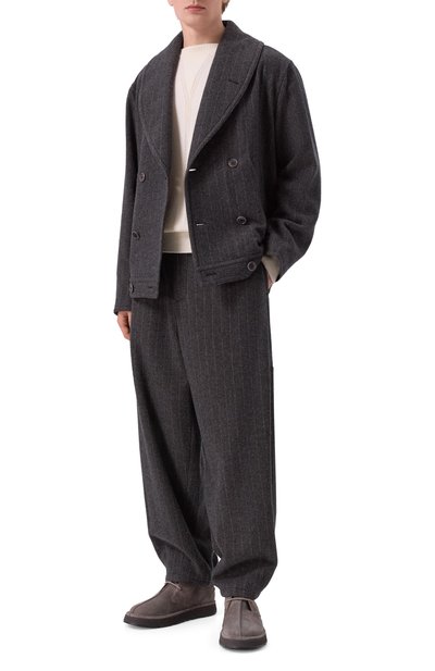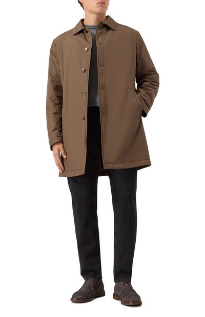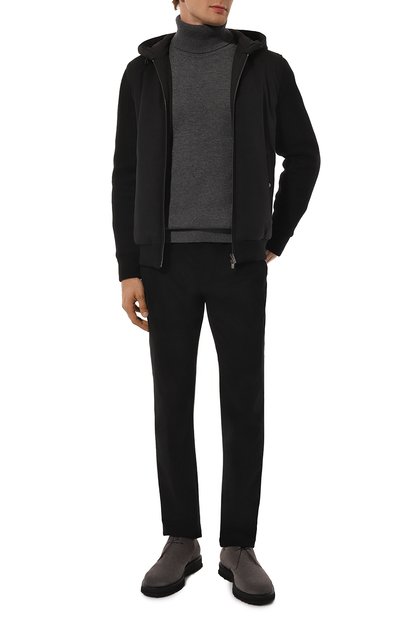 Ботинки Chukka сшили из телячьей замши по технологии San Crispino, которая придает обуви гибкость. Модель с рельефными швами и тисненым логотипом на заднике установили на резиновую подошву.