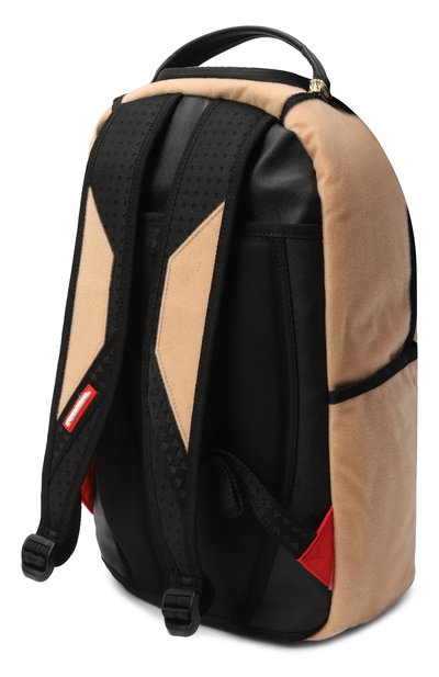 Рюкзак с внутренними плоским отсеком и карманом на молнии выполнили из полимера, напоминающего мелкозернистую кожу. Спереди модель украсили брендированным патчем и оттиском-эмодзи, которому вторит символика марки на спинке изделия.