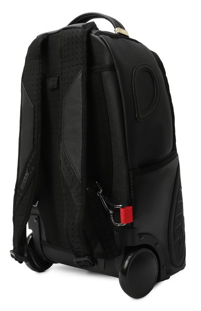 Рюкзак с эмблемой на текстильной спинке и силиконовым логотипом спереди выполнили из напоминающего кожу полимерного материала с паттерном Smiley. Аксессуар с двумя отделениями дополнили тремя внешними и одним внутренним карманами с молниями.
