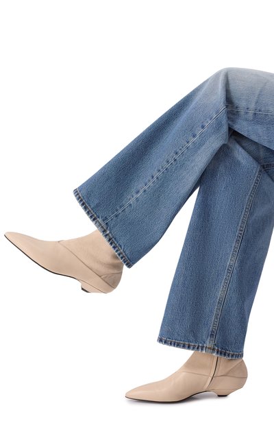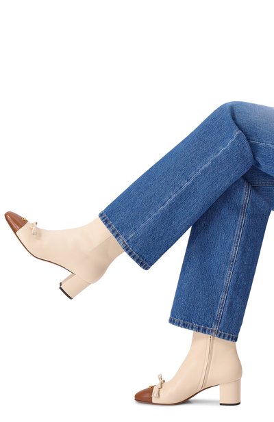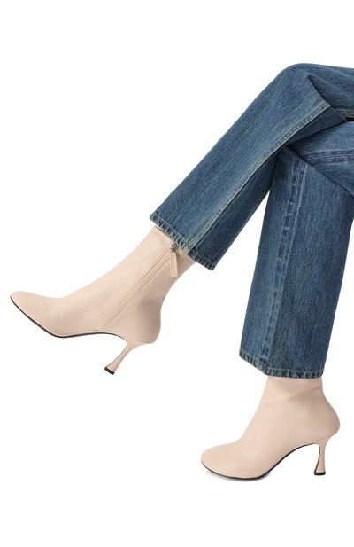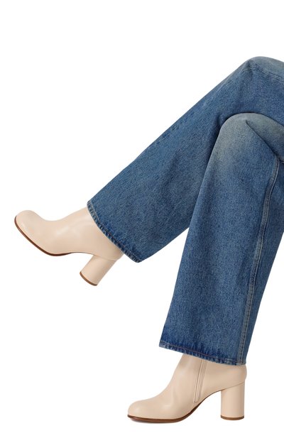 Ботильоны Peony на низком лакированном каблуке выполнили из матовой кожи. Благодаря широкому голенищу модель с зауженным квадратным мысом обходится без застежки.