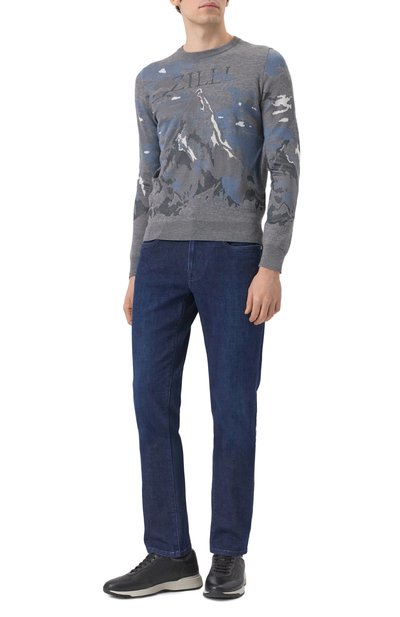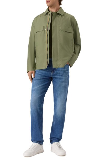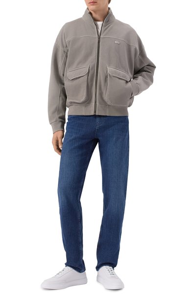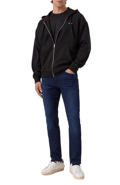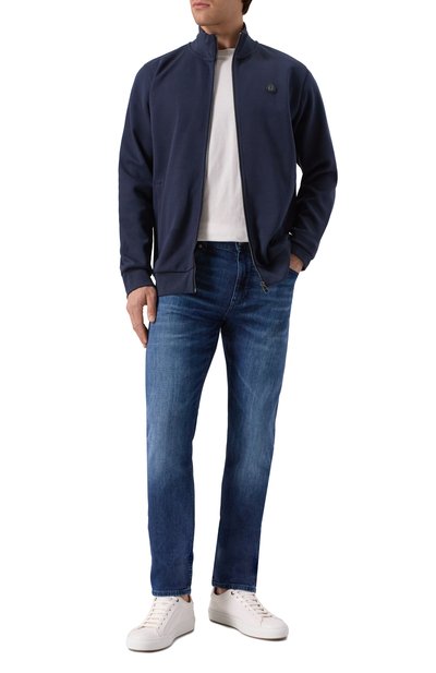 Джинсы Maine с заниженной посадкой сшили из эластичного хлопкового денима с декоративными потертостями. Пояс украсили брендированным патчем, а один из пяти карманов – металлической эмблемой Double B.
