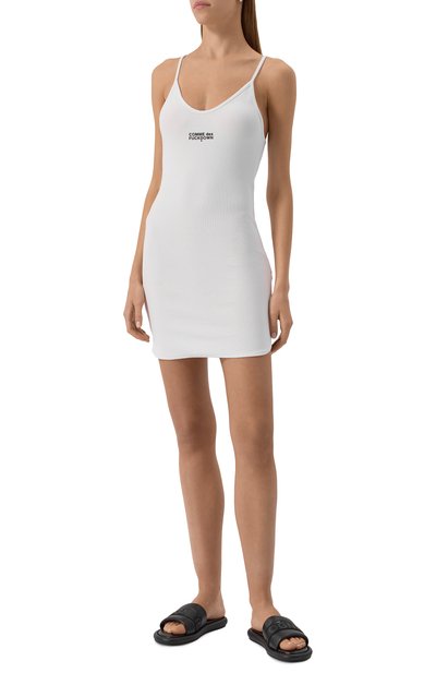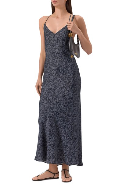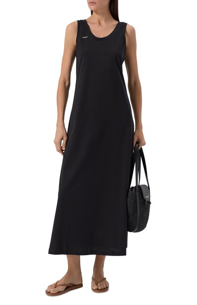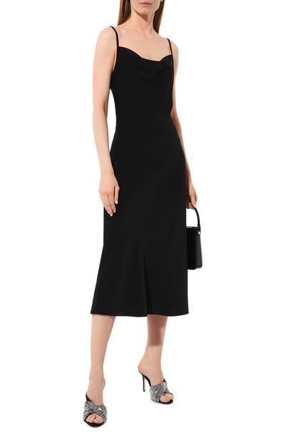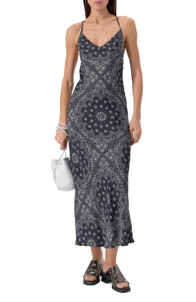 Платье Niamh выполнили из джерси на основе полиэстера с добавлением металлизированных нитей и эластана. Спереди изделие украсили контрастной нашивкой-логотипо м, которой вторит кант на горловине и проймах модели.