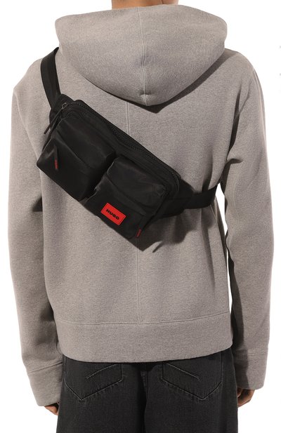 Поясную сумку Ethon 2.0 с регулируемым ремнем выполнили из экокожи на основе вторичного полиуретана. Наружный отсек декорировали повторяющимся тисненым логотипом и брендированным патчем. Внутри модель на молнии дополнили отк рытым карманом.