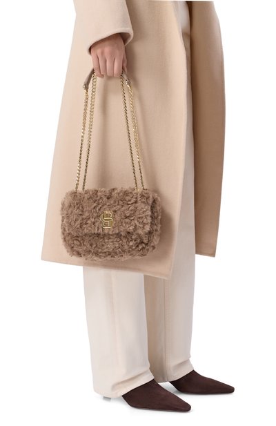 Сумку B Icon со скользящим плечевым ремнем-цепочкой выполнили из напоминающего овчину фактурного текстиля. Магнитный клапан модели с карманом внутри украсили золотистой эмблемой Double B.