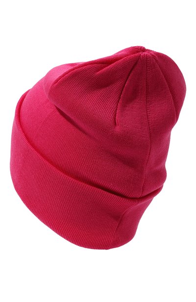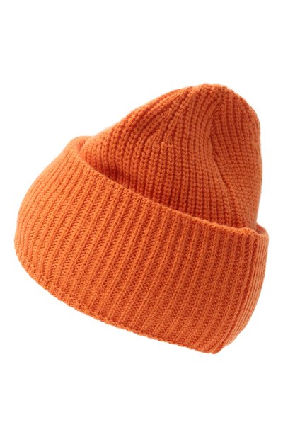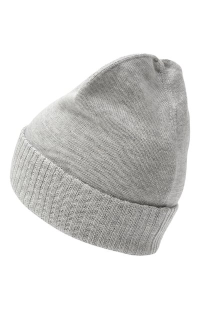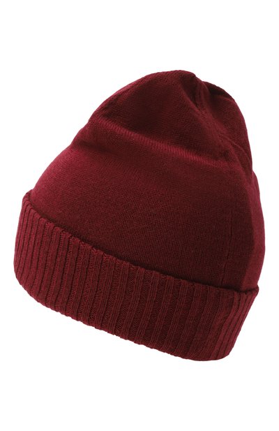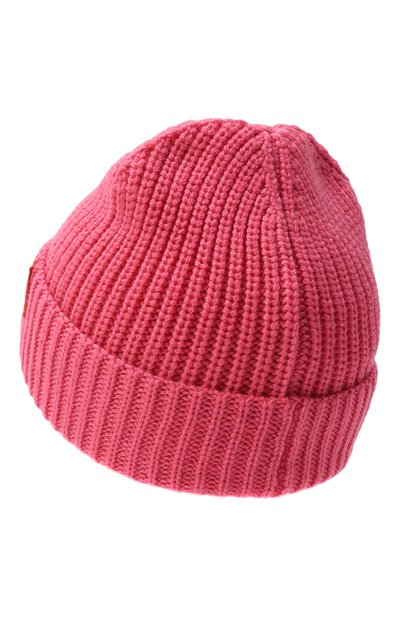 Шапку бини выполнили ребристой вязкой из смеси шерсти и вискозы с добавлением нейлона и кашемира. Широкий отворот украсили брендированным патчем.