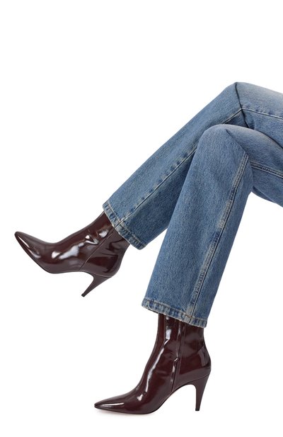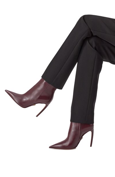 Ботильоны Ashley с зауженным мысом, на высокой шпильке выполнили из отшлифованной до блеска телячьей кожи. Модель застегивается потайной молнией сбоку.
