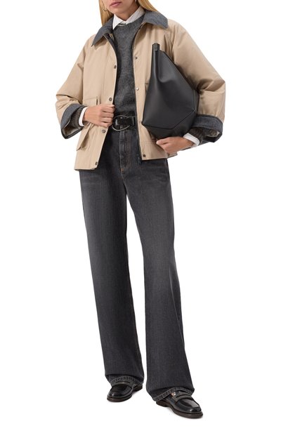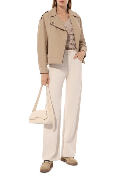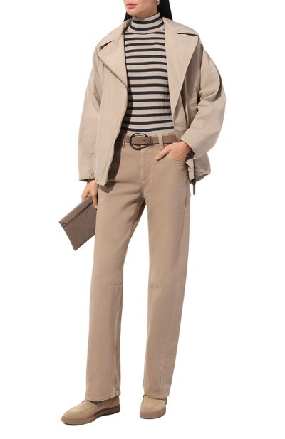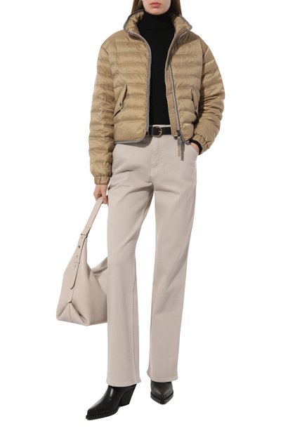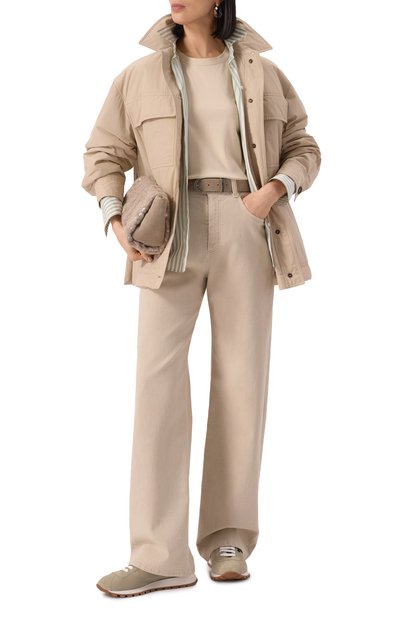 Анорак Mountain с капюшоном, а также эластичными поясом и манжетами дополнили накладным карманом с тремя входами. Модель из нейлона стрейч, украшенная эмблемой Solomeo, застегивается короткой молнией с кантом из фирменных цепочек мониль.
