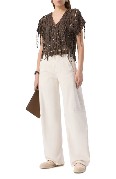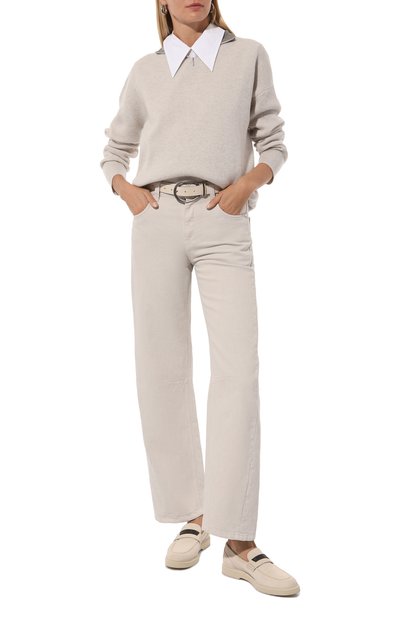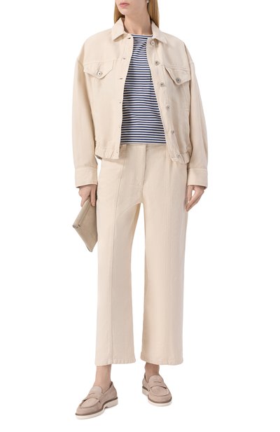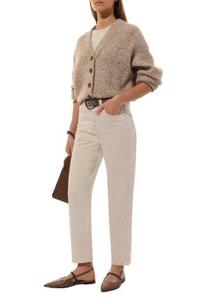 Для изготовления джинсов использовали эластичный хлопковый деним. Одну из шлевок модели с пятью карманами украсили фирменной цепочкой мониль.