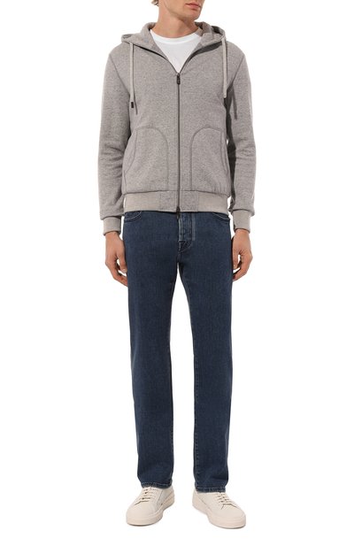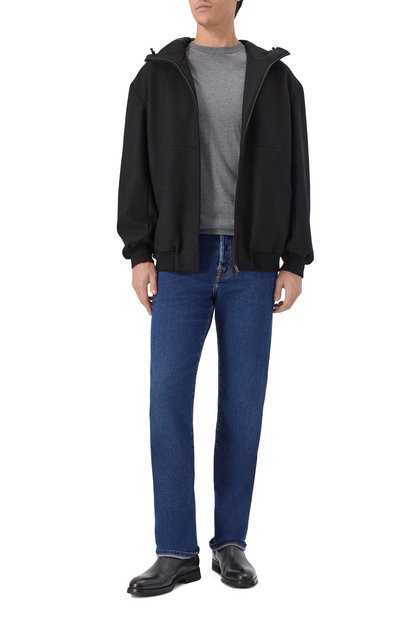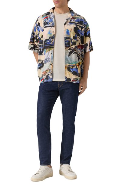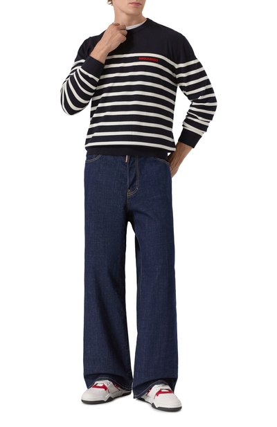 Джинсы 642 украсили жакроном на поясе сзади и брендированным ярлыком алого оттенка на ширинке. Модель из жесткого хлопкового денима прошили контрастной нитью.