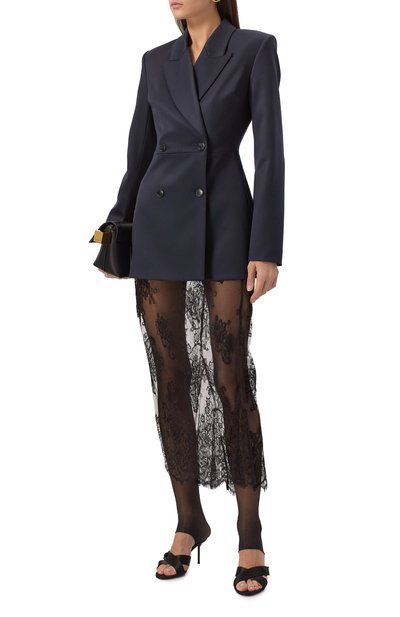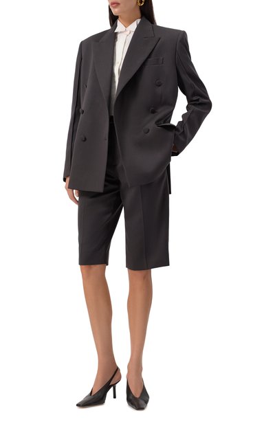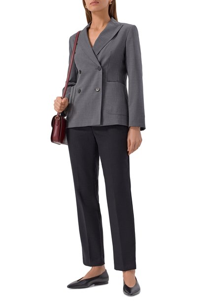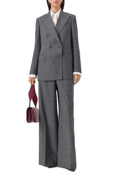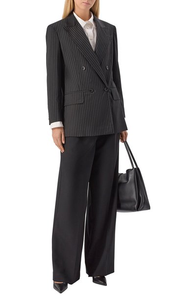 Двубортный жакет Kalen с заостренными лацканами выполнили из эластичной шерстяной фланели в меловую полоску. Модель с акцентированной линией плеч дополнили двумя карманами с клапанами.