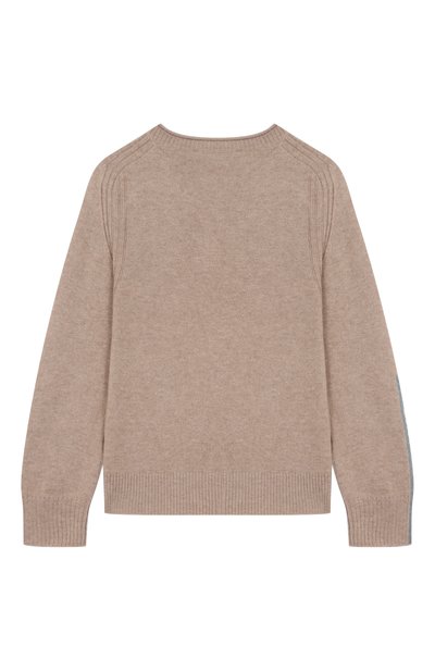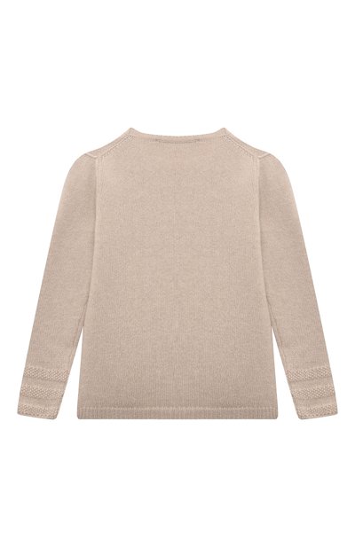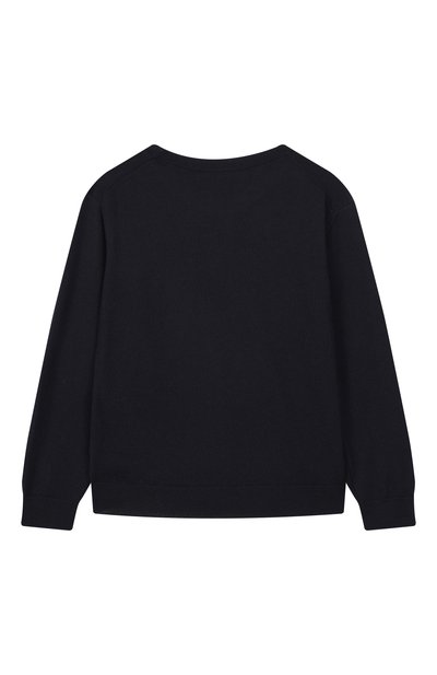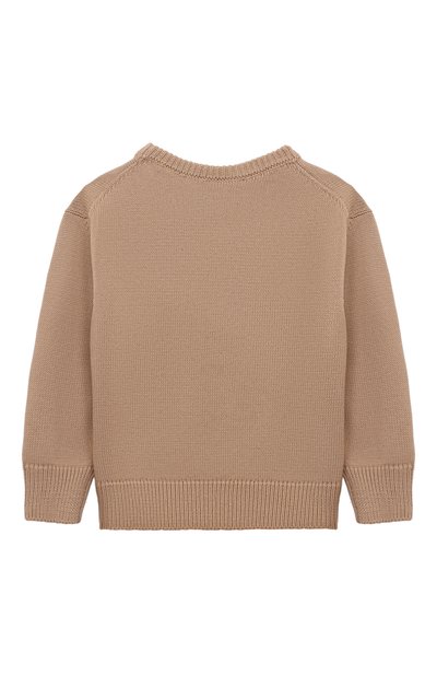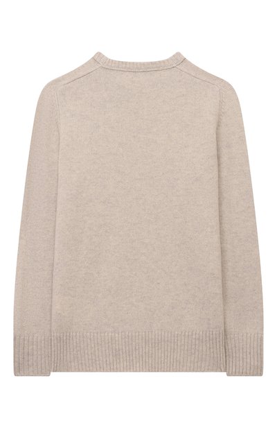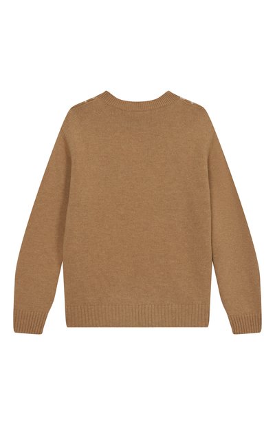 Пуловер с рифлеными манжетами, поясом и круглым вырезом выполнили из шерстяного трикотажа. Спереди модель украсили жаккардовым ромбовидным узором.