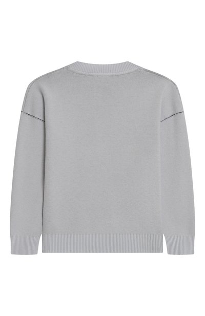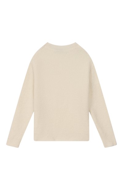 Свитер с круглой горловиной и спущенной линией плеч связали из шерстяной пряжи, укрепленной нейлоном. Эластичная модель без декора станет основой и школьного, и повседневного образа.