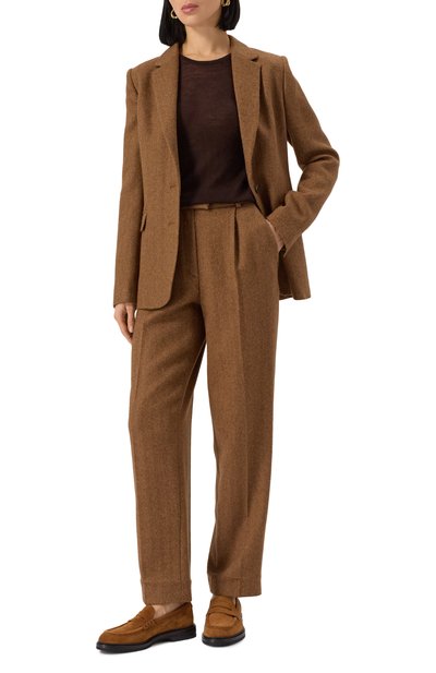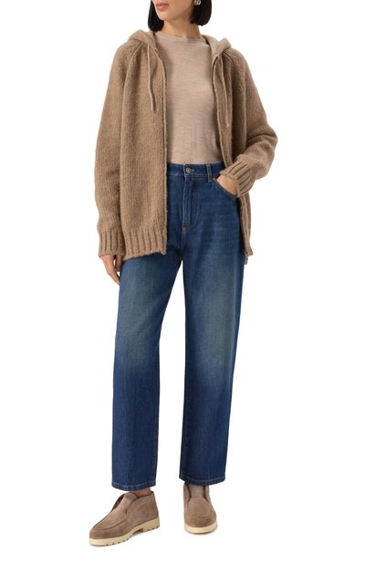 Для изготовления пуловера с круглым вырезом использовали шерсть мериноса диаметром 13,5 микрон. Модель сможет дополнить образ разной степени сложности.