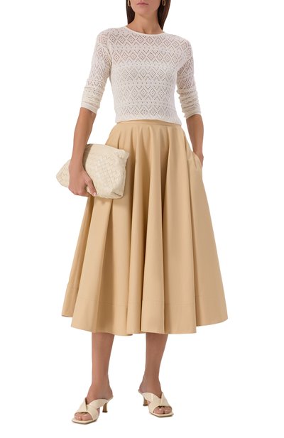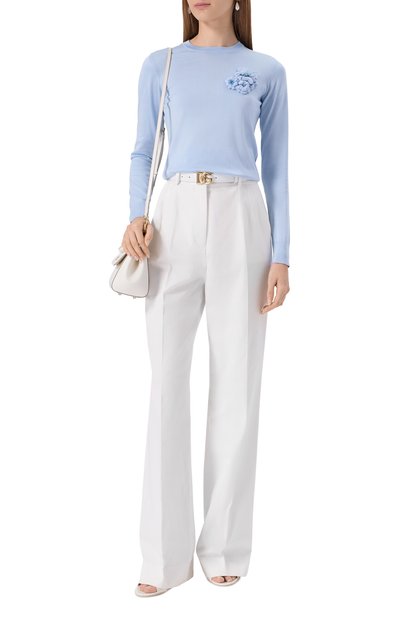 Для изготовления пуловера с круглым вырезом использовали шерсть мериноса диаметром 13,5 микрон. Модель сможет дополнить образ разной степени сложности.