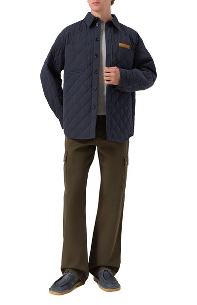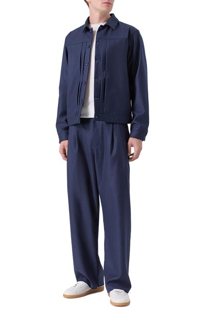 Рубашка из кашемировой фланели составит гармоничный дуэт с парными брюками. Модель с отрезным поясом дополнили защипами на спинке, а пуговичную планку подчеркнули двойными складками.