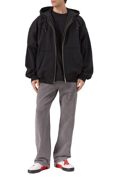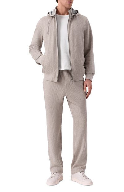 Брюки с эластичным поясом-кулиской выполнили из хлопкового вельвета стрейч. Прямая модель с тремя карманами подойдет для создания непринужденного повседневного образа.