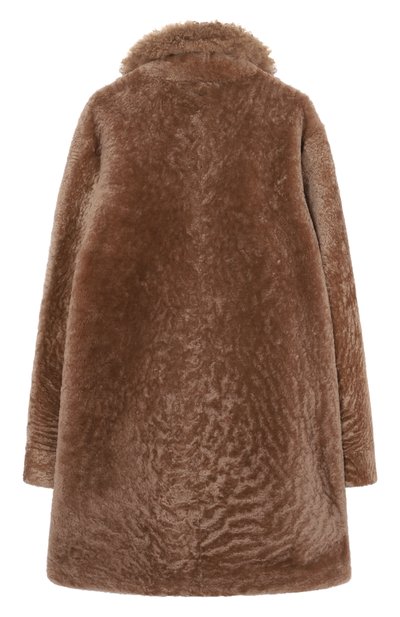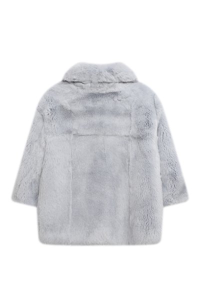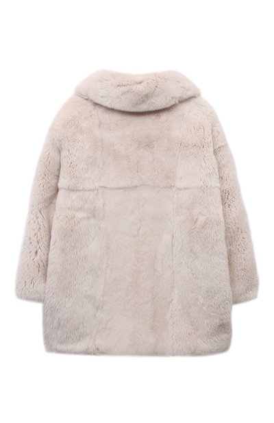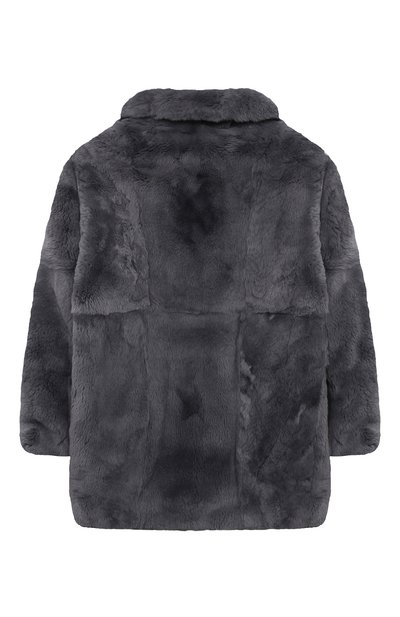 Для изготовления шубы использовали мех кролика, а подкладку выполнили из шелка. Модель с парой боковых накладных карманов застегивается пуговицами.