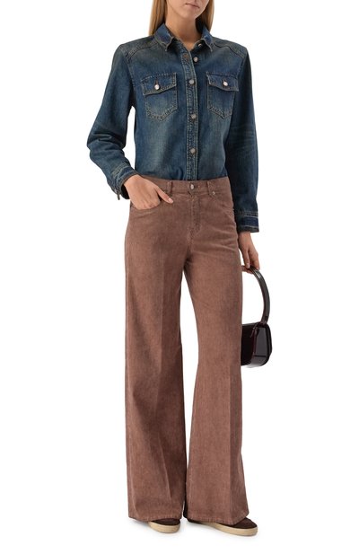 Слегка расклешенные брюки Piacente с пятью карманами выполнили из хлопкового вельвета с добавлением модала и эластана. Пояс модели сзади украсили патчем с фирменной эмблемой Love Birds.