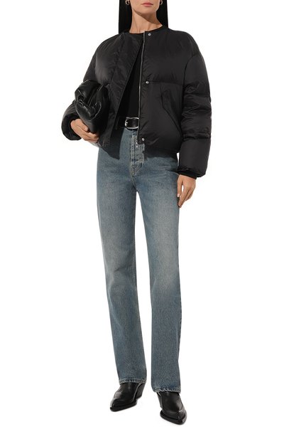 Пуховик Nita с высоким воротником-стойкой сшили из матового полиэстера. Куртку с боковыми карманами на молниях украс или стразами в тон.