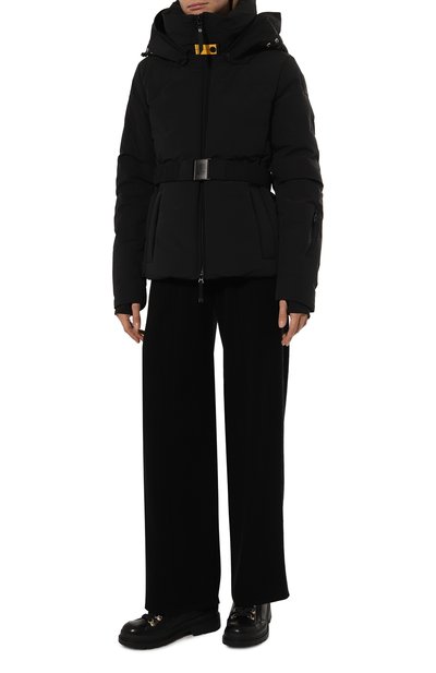 Пуховик Nita с высоким воротником-стойкой сшили из матового полиэстера. Куртку с боковыми карманами на молниях украсили стразами в тон.