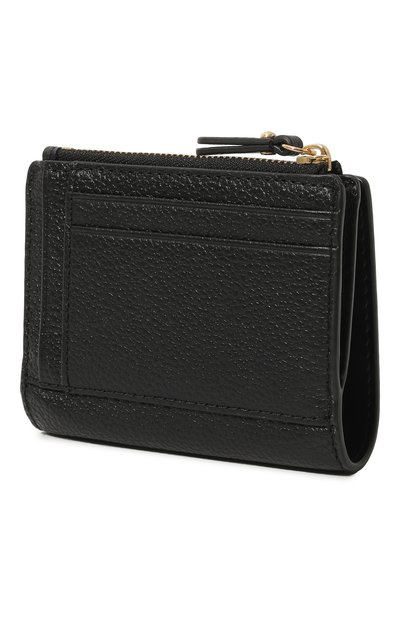 Портмоне с тисненым логотипом выполнили из крупнозернистой кожи. Отделение с шестью карточными слотами и отсеками для купюр и чеков застегивается кнопкой, а карман для монет сбоку – молнией с длинным пуллером.