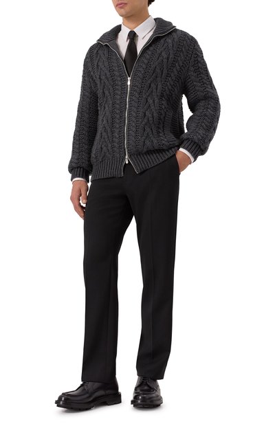 Дерби с отрезным миндалевидным мысом выполнили из гладкой кожи. Модель на слегка выступающей подошве дополнили брендированной стелькой фирменного желтого оттенка Golden Cream.
