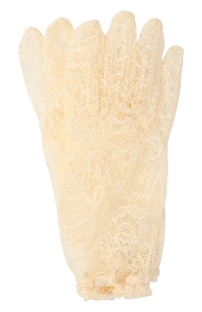 Перчатки с эластичной вставкой на манжете выполнили из цветочного кружева. На принадлежность аксессуара бренду указали миниатюрной металлической эмблемой VLogo Signature.