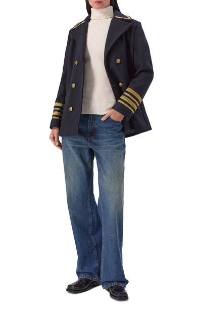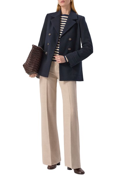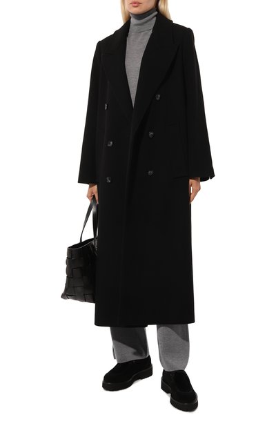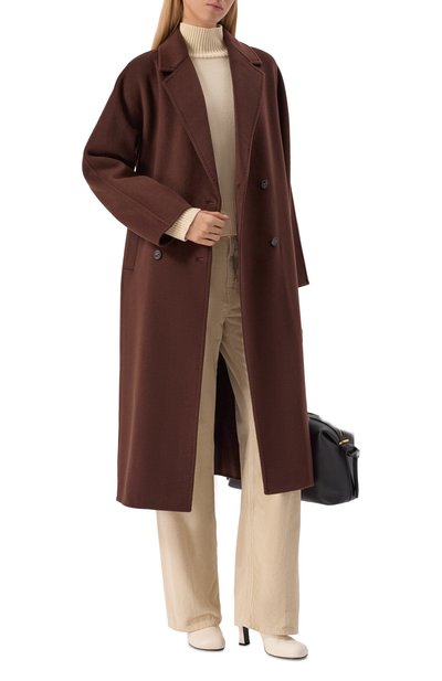 Для создания двубортного миди-пальто Clara без подклада использовали шерсть, сертифицированную Ecocert Greenlife по стандарту RWS. Модель с высокой шлицей сзади дополнена двумя врезными карманами.