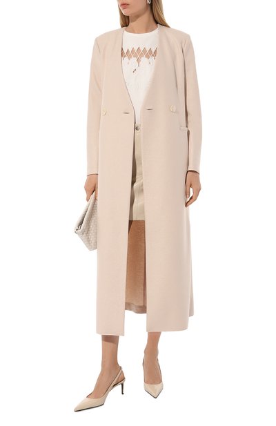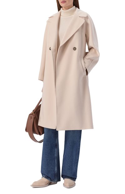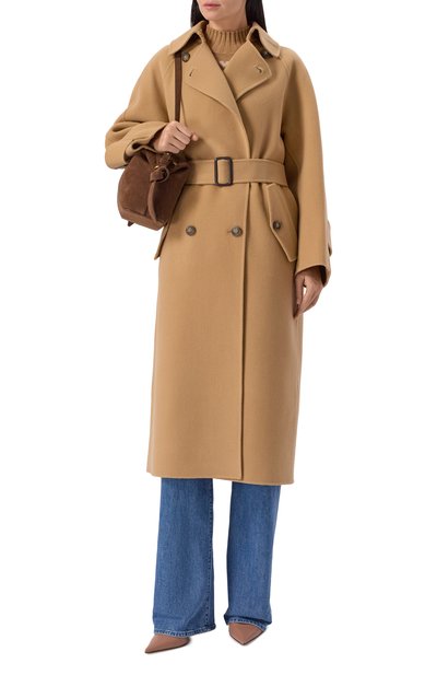 Двубортное пальто Colette Ann с боковыми карманами, ружейными клапанами, кокеткой и погонами, как у тренча, сшили из шерсти, сертифицированной Ecocert Greenlife по стандарту RWS. Модель без подклада дополнена съемным поясом-лентой.