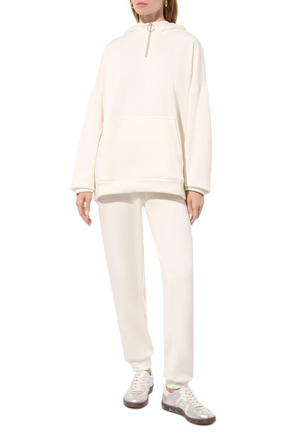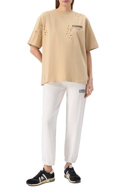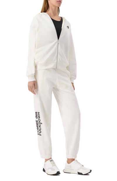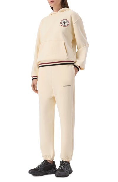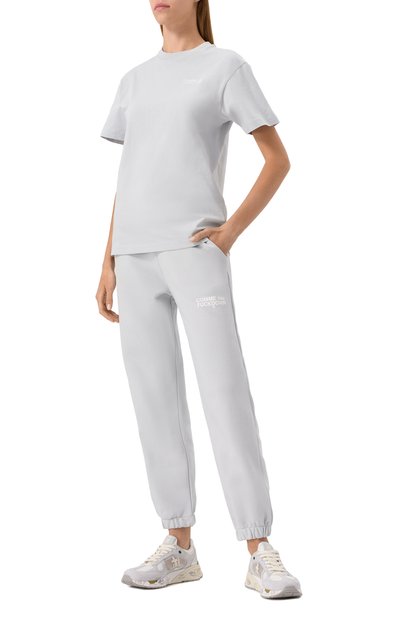 Джоггеры с эластичными манжетами и поясом-кулиской выполнили из хлопкового трикотажа с добавлением полиэстера. Модель с боковыми карманами декорировали контрастным логотипом спереди.