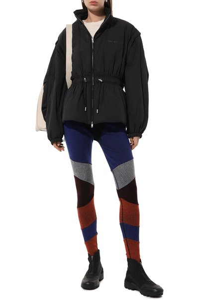 Для изготовления легинсов использовали эластичную овечью кожу тонкой выделки. Модель с фирменным квадратом из контрастных строчек сзади дополнили широким поясом-резинкой.
