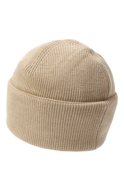 Шапку бини Asic связали узором в рубчик из хлопковой пряжи с добавлением шерсти первого пострига. На широком отвороте модель декорировали прорезиненным логотипом марки.
