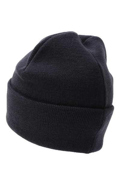 Шапку бини Asic связали узором в рубчик из хлопковой пряжи с добавлением шерсти первого пострига. На широком отвороте модель декорировали прорезиненным логотипом марки.
