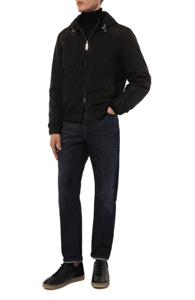 Базовые зауженные джинсы Maine кроя Regular fit сшили из эластичного хлопкового денима. Модель с классической посадкой дополнена пятью карманами и брендированным патчем на поясе сзади.