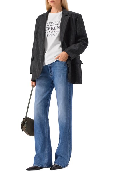 Для изготовления футболки Evi кроя Relaxed fit использовали чуть бархатистый на ощупь трикотаж из хлопка, выращенного методом регенеративного земледелия. Спереди модель декорировали выложенной стразами надписью The Party Has Arrived.