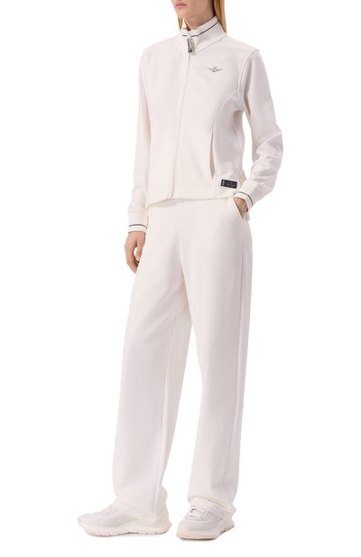Толстовка Dessie из хлопкового бархата с добавлением полиэстера составит комфортный дуэт с парными брюками. Спереди укороченную модель с воротником-стойкой украсили крупным рельефным логотипом. Изделие кроя Slim fit застегивается контрастной молнией.
