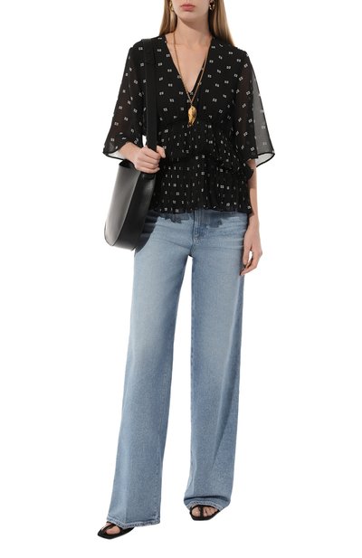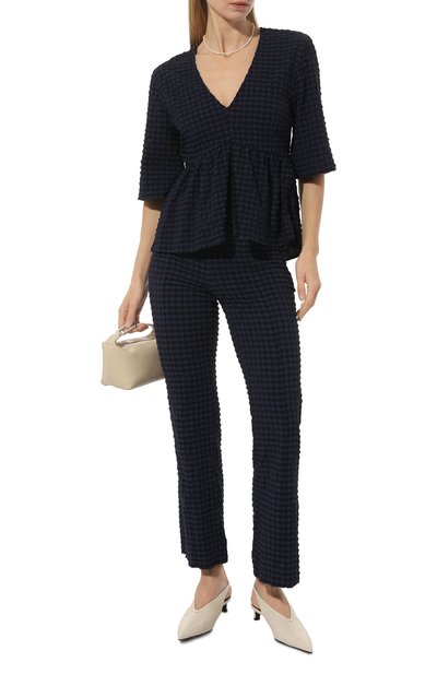 Блузку Baima с рукавами реглан длиной 3/4 выполнили из немного просвечивающего полиэстера с фактурным клетчатым узором. Плиссированная модель свободного кроя застегивается крючком на спинке.