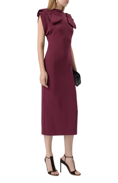 Платье Dimosa кроя Regular fit выполнили из сабле на основе ацетата и вискозы. Модель с матовой отделкой на широких лацканах и подоле дополнили узким поясом в тон.