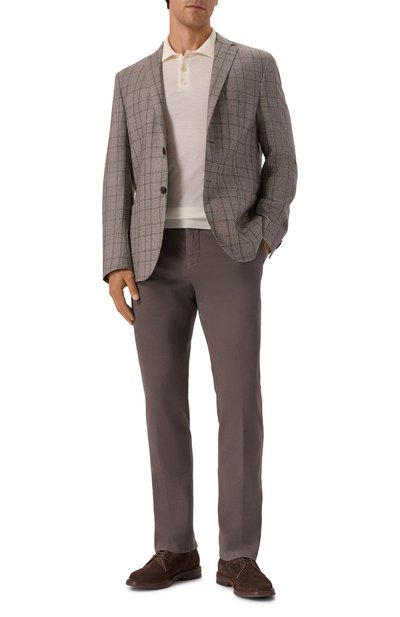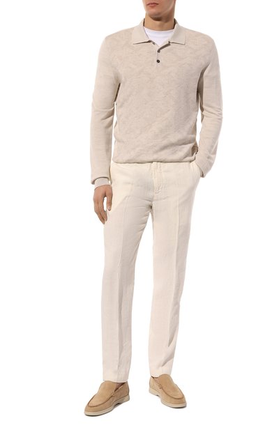 Поло с арановым узором связали из кашемировой пряжи двойного кручения, выполнив манжеты и пояс в рубчик. Модель кроя Regular fit застегивается тремя пуговицами.