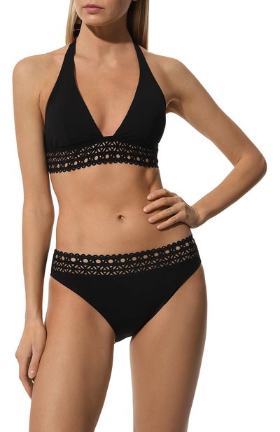 Бра Gang выполнили из стрейчевого быстросохнущего материала на основ е полиамида. Модель с треугольными чашечками на боковых косточках и завязывающимися сзади бретелями застегивается плоским замком-защелкой на поясе.