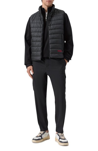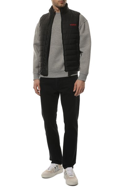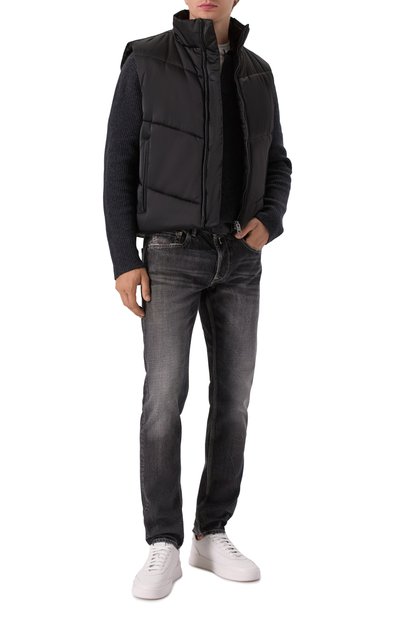 Для изготовления жилета на пуговицах использовали пряжу из мериносовой шерсти. Спереди модель дополнили парой врезных карманов, а на спинке в рубчик – фирменной петлей и вставкой, регулирующей посадку на талии.