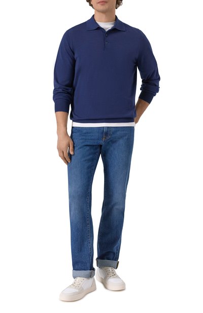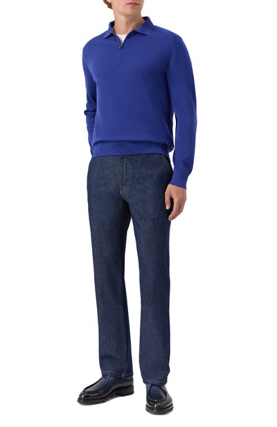 Поло с супатной застежкой органично впишется в базовый гардероб. Модель с рифлеными манжетами и поясом связали из нежного baby-кашемира, вычесанного вручную у козлят породы Hirens Bottus Lansger.